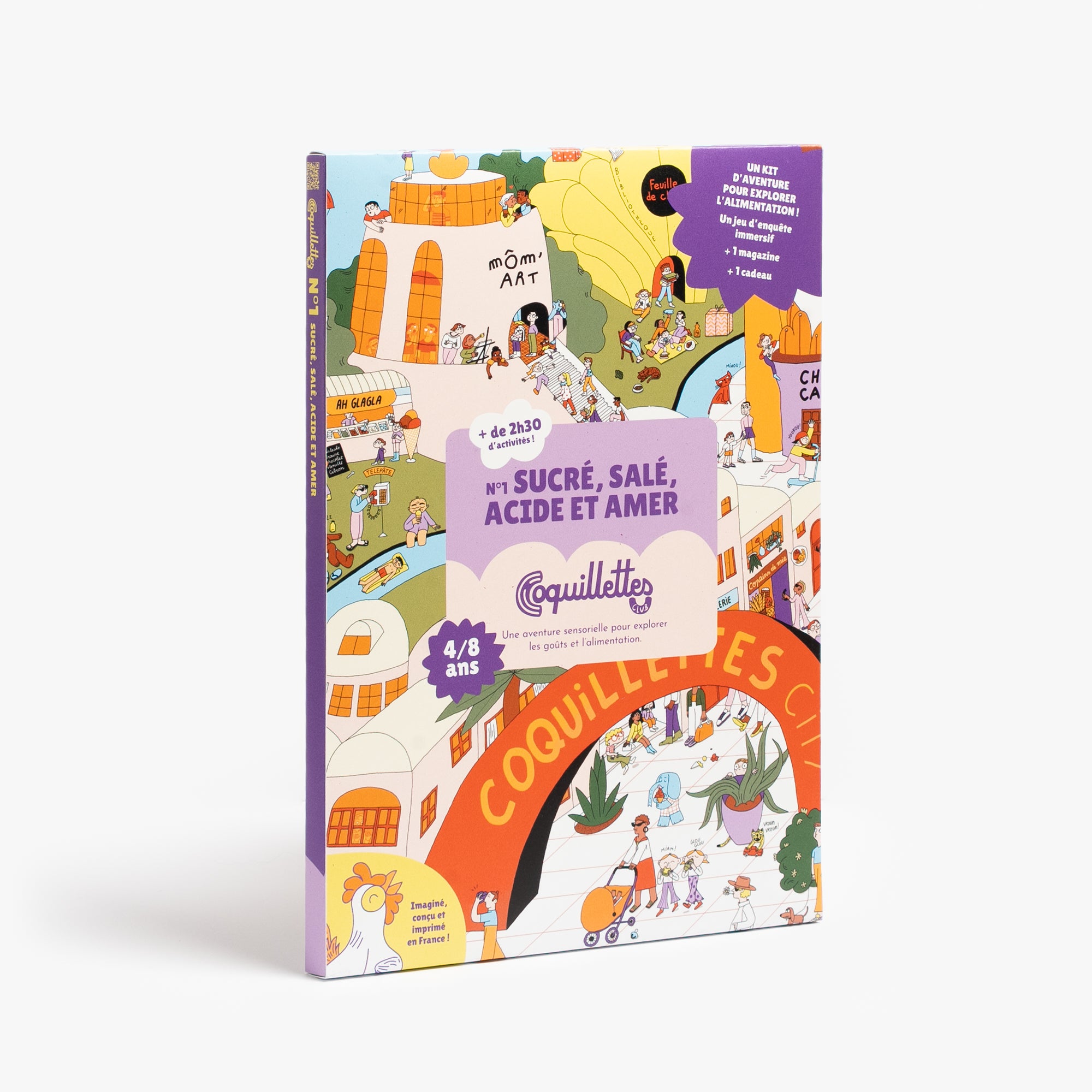 Bienvenue à Coquillettes City, une ville où les goûts se cachent partout ! Votre enfant devient aventurier du goût et part en mission pour découvrir le sucré, le salé, l'acide et l'amer… et même un mystérieux 5ᵉ goût !